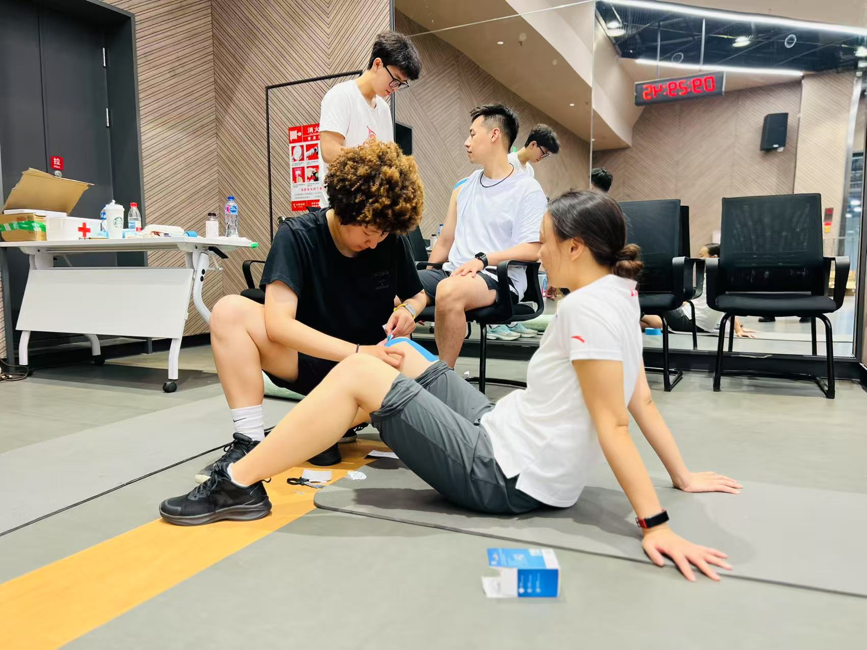 作为香蕉视频 的学生,团队成员将课堂所学转化为实践动能,围绕“预防-防护-恢复-应急”全流程构建起系统化保障体系。训练前,他们结合广播体操的伸展、转体等动作特点,为队员们量身定制热身方案,通过针对性的肌肉激活与关节舒展训练,从源头降低运动损伤风险;训练过程中,针对肩颈、腰腹等易疲劳部位,精准运用肌肉贴扎技术提供支撑,缓解局部压力;训练结束后,又指导队员使用泡沫轴、筋膜球进行自主放松,辅以专业拉伸和推拿手法加速恢复,为次日训练储备能量。“看似简单的热身指导,背后是运动解剖学、运动生物力学的专业支撑;每一次肌肉贴扎的角度和张力,都需要结合动作力学原理精准把控。”团队成员坦言。在保障过程中,他们始终以专业标准要求自己,把课堂上的理论知识转化为守护健康的实际能力。这种专业精神在应急处理中尤为凸显,一次训练中一名队员突然崴脚,团队成员仅用3分钟便通过固定、加压、冷敷等专业处理缓解症状,后续利用肌内效贴布控制了肿胀出现,确保其及时回归训练。