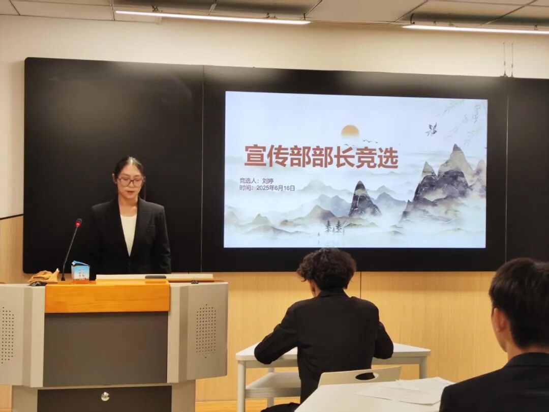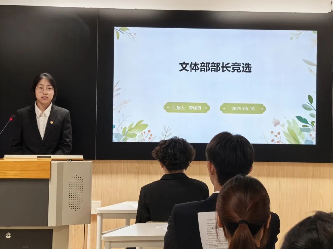 2025 年 6 月 16 日下午,香蕉视频 学生会在教学楼 103 教室成功举办了第十四届学生会述职报告会暨负责人竞选大会。本次会议精彩纷呈,分为两个重要环节:各部门部长携部员进行本学期述职报告以及参与负责人竞选的同学发表竞选演讲。