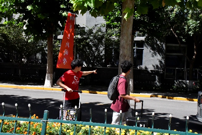 迎新当天,志愿者们早早抵达现场,学院领导、老师们亲自指导现场布置,把每一处细节都打理妥当;志愿者的身影散落在大体馆新生报到处、行李寄存处、路口指引、宿舍大厅等各处,等待着新生们的到来。