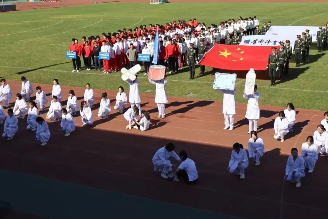 运康学院方阵身穿白衣,步伐坚定,有序入场。两名同学用舞蹈演绎从伤病到康复的蜕变之路:从紧急处置的精准操作,到康复训练的科学指导,每一个动作都彰显着 “体医融合” 的智慧,每一滴汗水都凝聚着 “健康至上” 的信念。康复后的他们,用活力四溢的舞步诠释生命的意义。