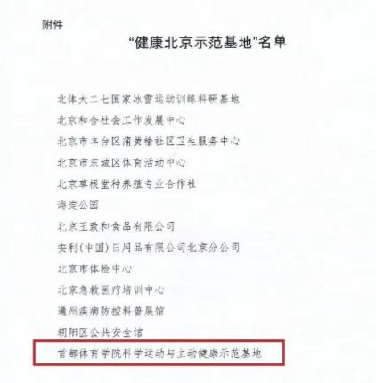 首体院“科学运动与主动健康示范基地”获批北京市首批“健康北京示范基地”