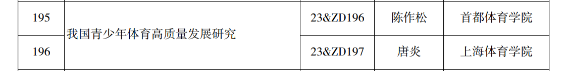 2023年12月28日,全国哲学社会科学工作办公室公布了2023年度国家社科基金重大项目立项名单,陈作松教授担任首席专家申报的“我国青少年体育高质量发展研究”项目成功获批立项。国家社科基金重大项目是现阶段我国哲学社会科学研究领域层次最高、竞争性最强、最具权威性的项目类别,项目研究成果一定程度上代表着国家社科研究的最高水准。