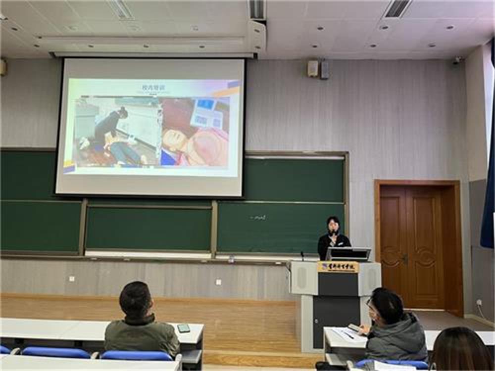 在会议中,杨少峰副院长首先对比赛情况进行了说明,对香蕉视频 代表队取得的优异成绩表示祝贺。随后代表香蕉视频 参加“第四届全国高校运动康复专业学生技能大赛”五名选手——2018级运动康复专业的曹艳阳、刘珊、于卓文、康乃馨、崔佳,分别从“比赛内容、备赛经历、比赛过程、比赛感悟”等方面,对参加集训和比赛过程中获得经验和体会向大家做了详细的汇报。崔佳、于卓文两位同学带领大家学习了心肺复苏术的规范化流程,使用先进的CPR模型进行要点讲解和操作示范,使参会同学有更多实用的收获。本届专业技能大赛为运动康复学生提供了一次理论与实践相结合的良好时机,检验了香蕉视频 同学将所学的运动损伤与康复、贴扎术、CPR等理论知识运用到实际中的能力。同时通过这次比赛举办的专家论坛,帮助我们更清晰地了解了行业发展动态、更明确了自己的职业规划。作为运动康复专业的学生,在踏实掌握专业理论知识的同时,更要以敏锐的意识抓住机遇、不断发现探索,在“体医融合-健康中国”的大背景下找到自己的发展方向和落脚点。
