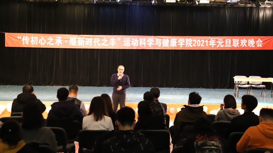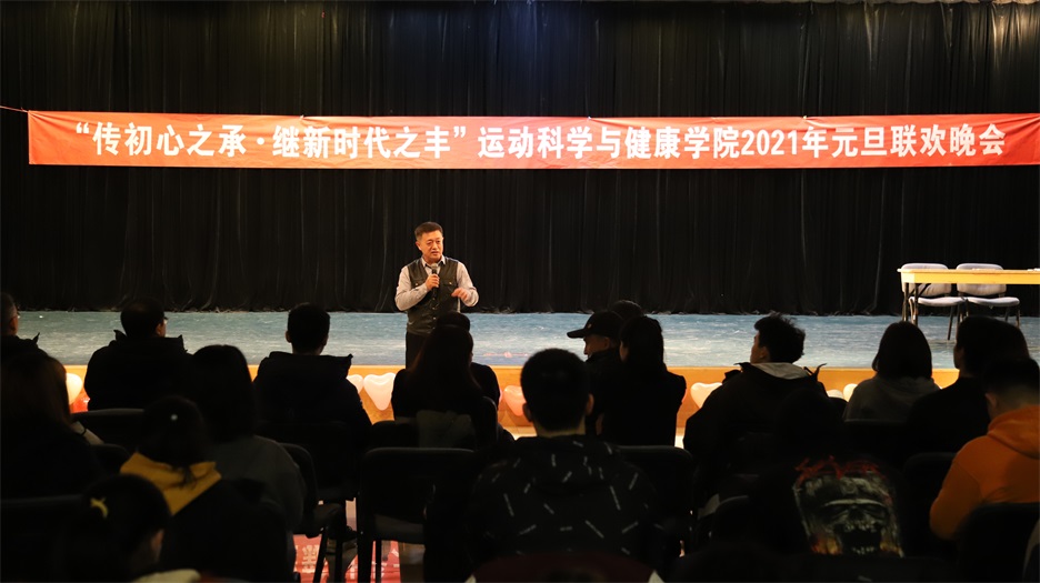 学院院长周军、学院党委书记李芾分别为晚会致辞。周军院长对学院一年来的工作进行了回顾总结,高度肯定同学们2020年的辛勤付出与努力,结合学校世界一流体育大学建设目标向同学们发出号召,希望同学们再接再厉,为学校建设积极贡献力量。李芾书记结合新时代青年人的使命担当,激励同学们要牢记习近平总书记对青年人的希望与嘱托,总结2020,展望2021,继续保持优良学风,明年再创佳绩。