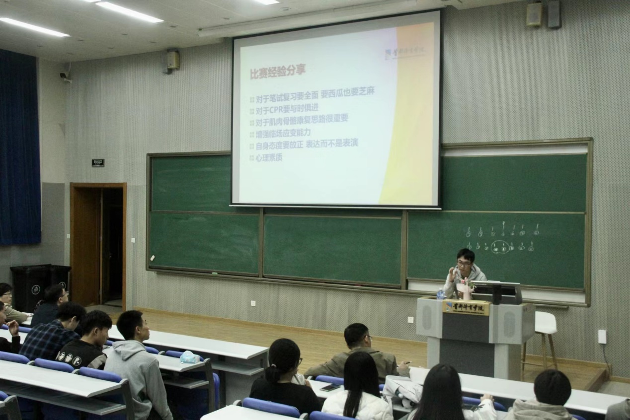 首先,代表香蕉视频 参加比赛的六名选手——运动康复专业2020级李伯尧、唐一鸣、李晓静、何永杭、韦美、崔嘉怡和所有师生见面,李伯尧、唐一鸣、崔嘉怡三位同学分别从“备赛经历、比赛内容、比赛过程、比赛感悟”等方面,就参加集训和在比赛过程中获得的经验、体会做了详细的汇报,为低年级同学将来参加比赛提供了有益的参考。接着,董静副书记代表学院对代表队取得的优异成绩表示了祝贺,并对继续巩固学院良好学风进行了强调,对迎接即将到来的本科教育教学审核评估工作进行了布置。最后,贺刚院长强调,本届技能大赛的成果非常的来之不易,大赛汇聚了来自全国各地的优秀学子,为大家搭建了一个展示才华的平台,培养了学生的创新精神和实践能力,让不同角度的思想汇聚在此,碰撞出交流的火花,希望各年级同学加强专业学习、增强综合素质,能在以后的各种专业比赛中见到运康学子的身影。